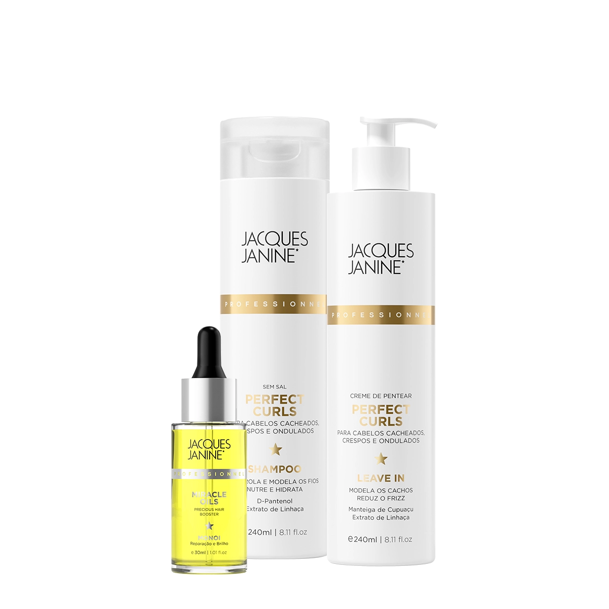 Kit Jacques Janine Professionnel Perfect Curls Shampoo Leave-in e Night Sérum (3 produtos)