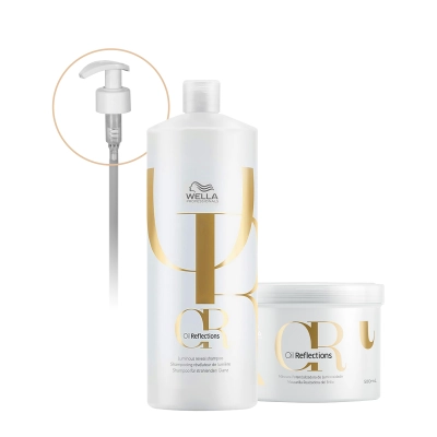 Kit Wella Professionals Oil Reflections Shampoo Máscara Válvula Pump (3 produtos)
