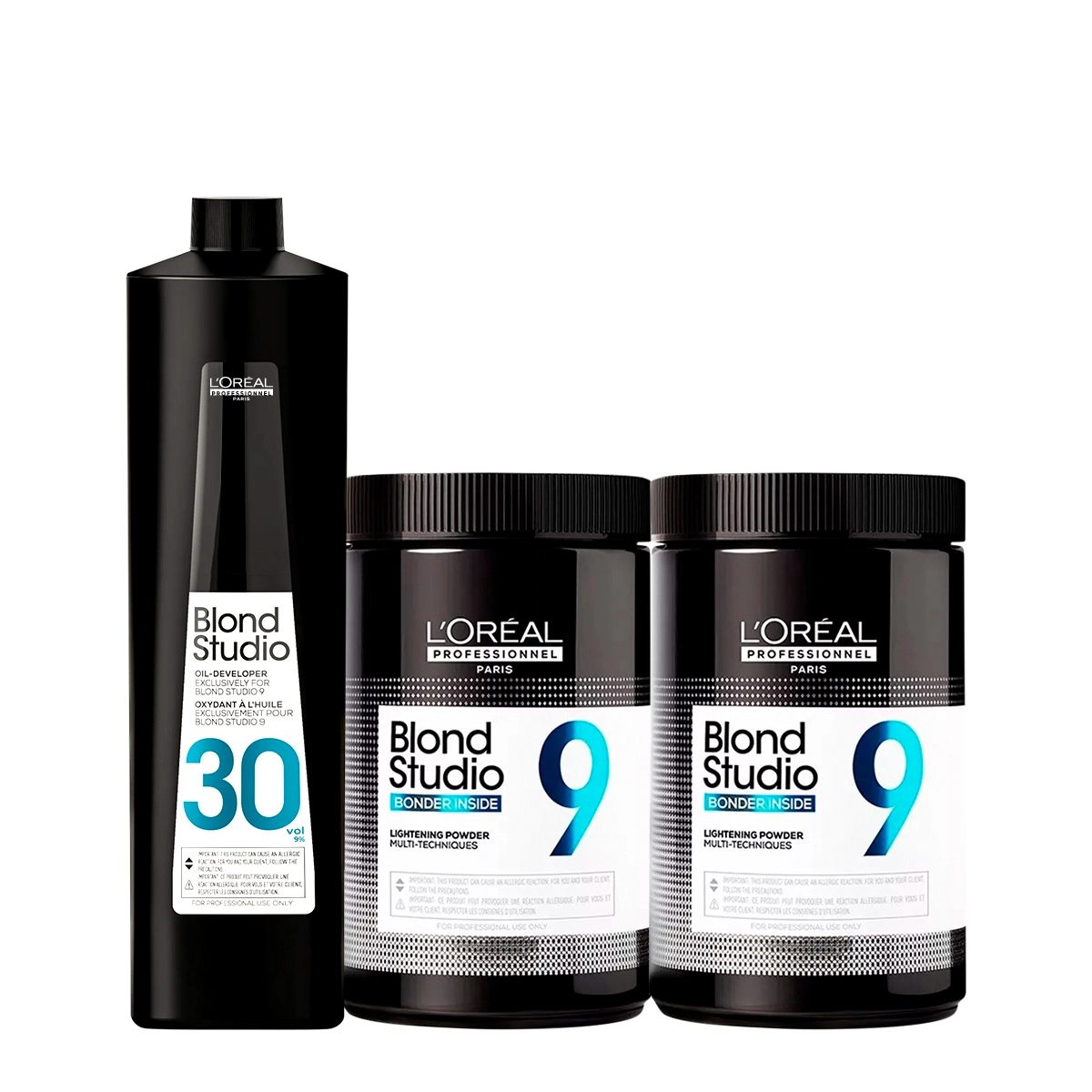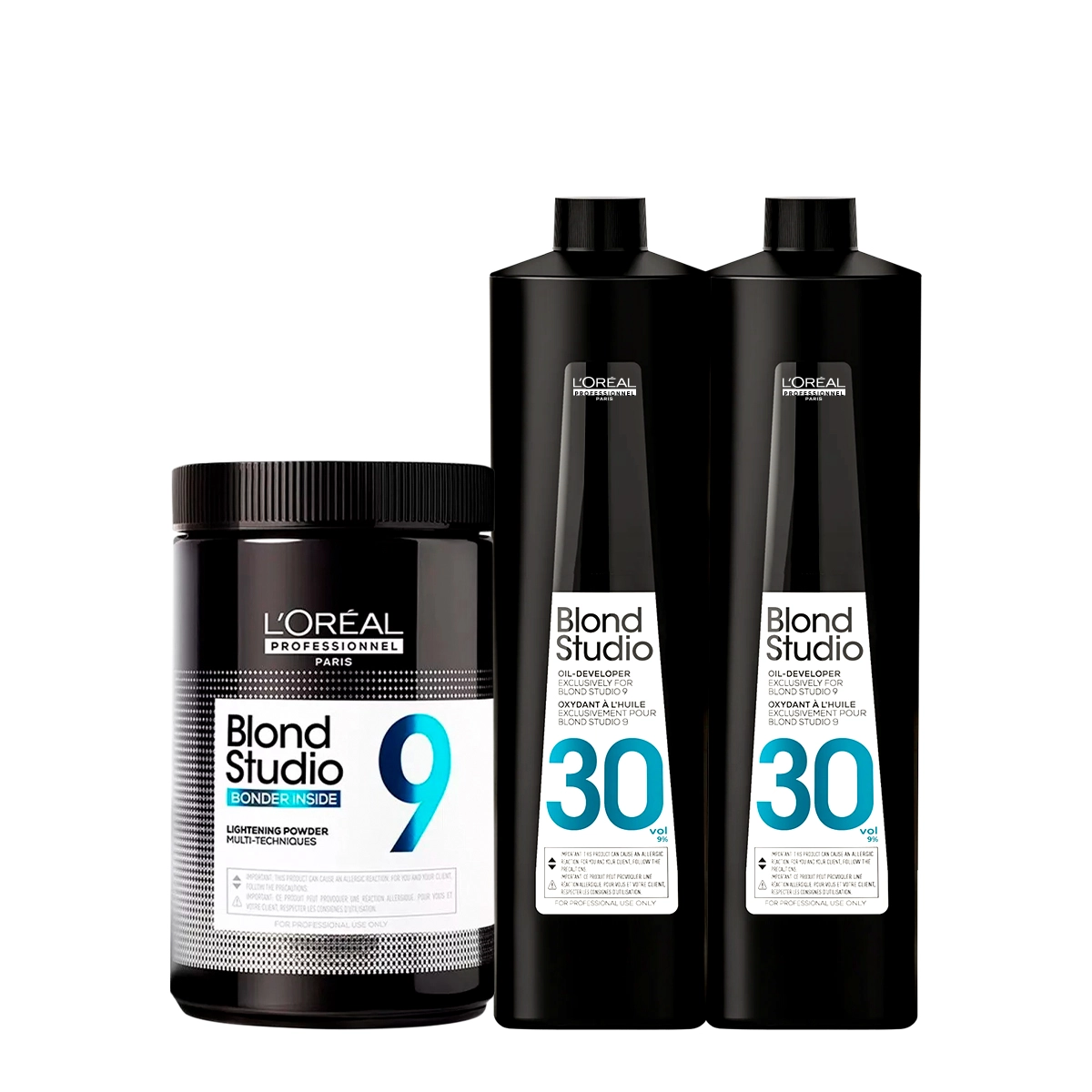 Kit L'Oréal Professionnel Blond Studio 9 Pó Descolorante e Oil Developer Extra Oxidante 30V (3 produtos)