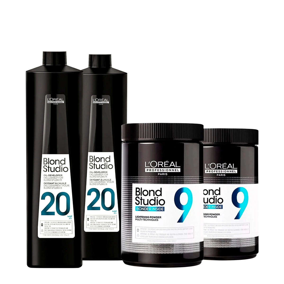 Kit L'Oréal Professionnel Blond Studio Extra 9 Pó Descolorante e Oil Developer Oxidante 20V 30V (4 produtos)