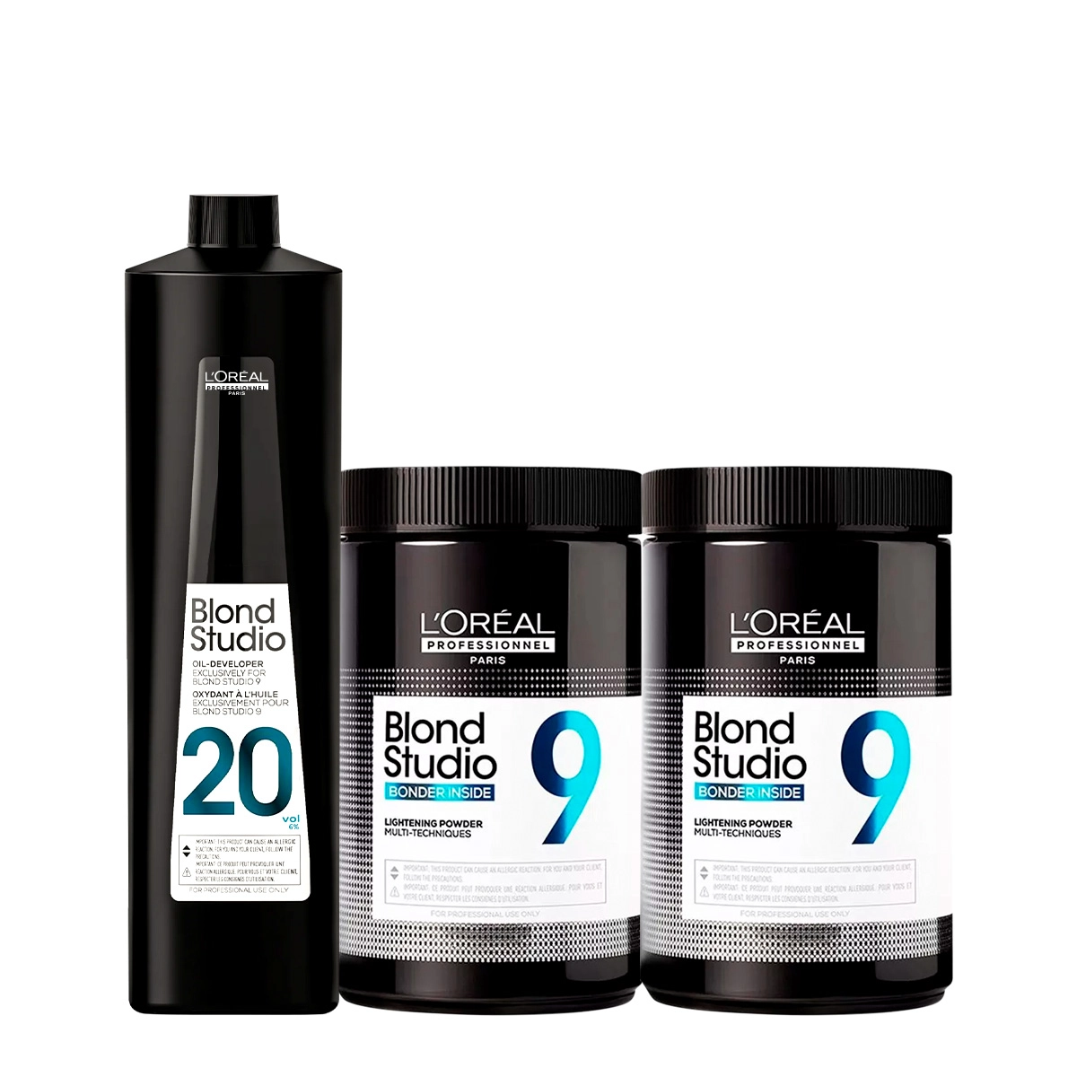 Kit L'Oréal Professionnel Blond Studio 9 Pó Descolorante e Oil Developer Oxidante 20V 30V (3 produtos)