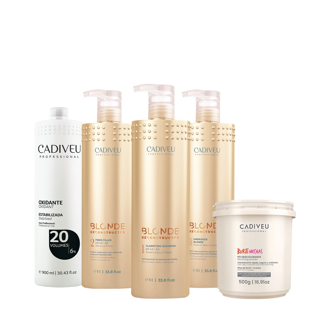Kit Cadiveu Professional Blonde Reconstructor Completo Oxidante 20 Volumes e Buriti Mechas (5 produtos)