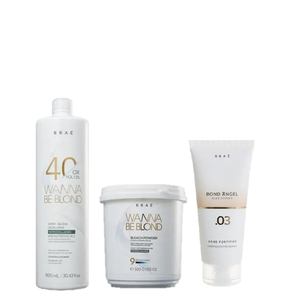 Braé Wanna Be Blond Água Oxigenada 20V 900ml+Água Oxigenada 30V 900ml+Água Oxigenada 40v+3 Pó Descolorantes 500g