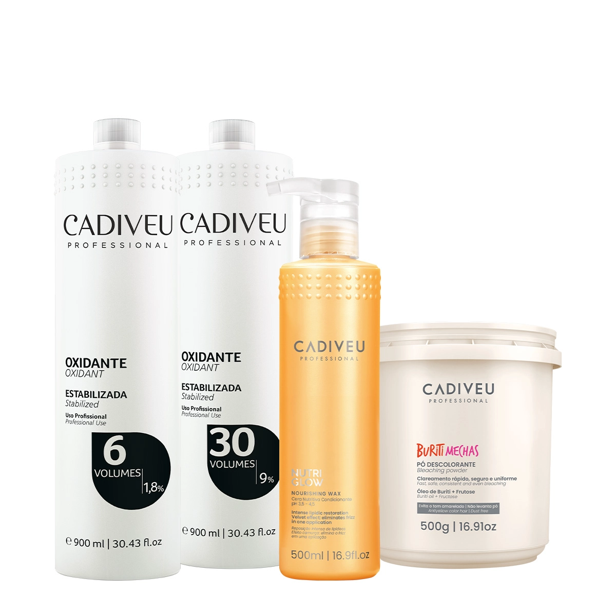 Kit Cadiveu Professional Oxidante 6V 30V Pó Descolorantre e Cera Nutritiva (4 produtos)