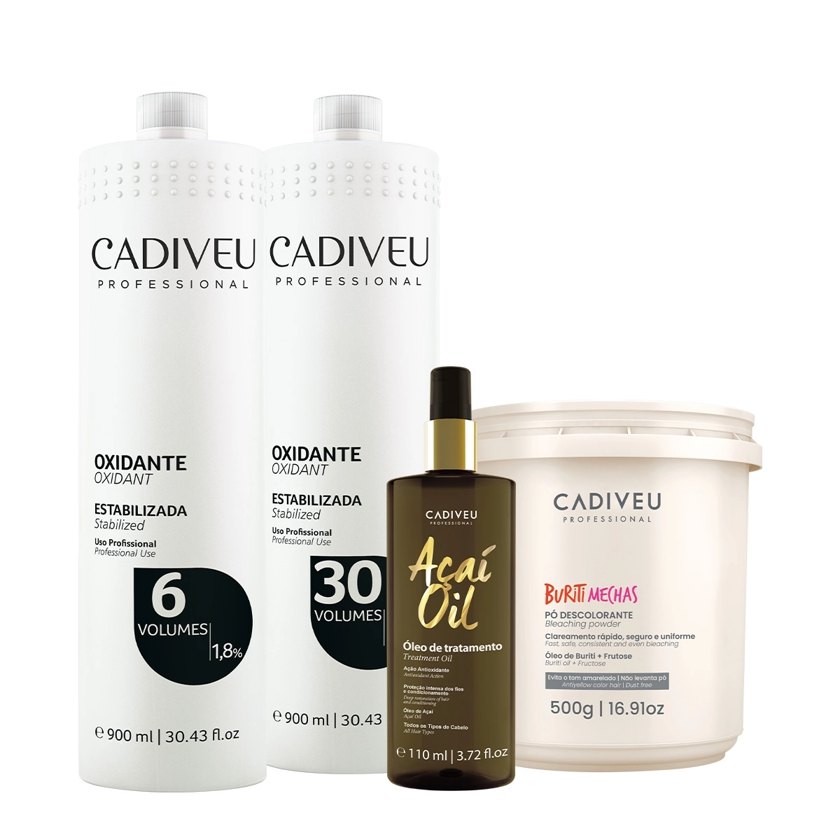 Kit Cadiveu Professional Oxidante 6V 30V Pó Descolorantre e Açaí 110 (4 produtos)