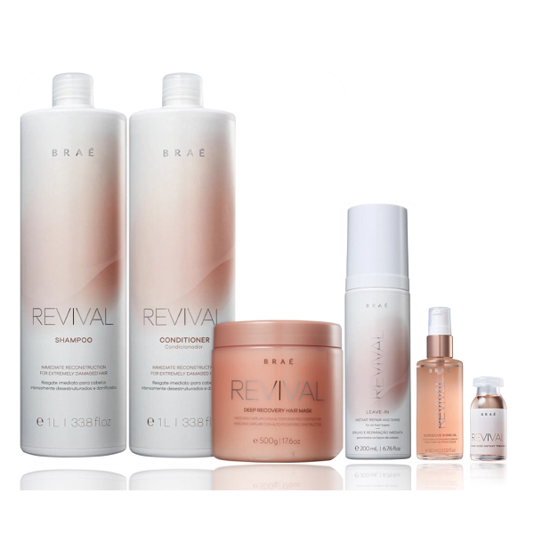 Braé Revival Shampoo+Condicionador 1L+Máscara 500g+Leave-in 200ml+ÓIeo 60ml+Ampola 13ml