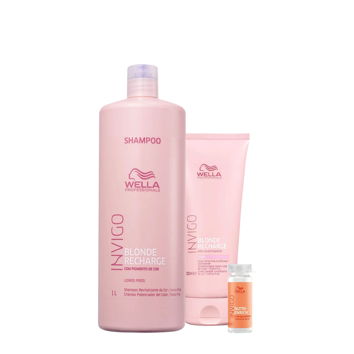 Kit Wella Professionals Blonde Recharge Enrich Shampoo Litro Condicionador Ampola (3 produtos)