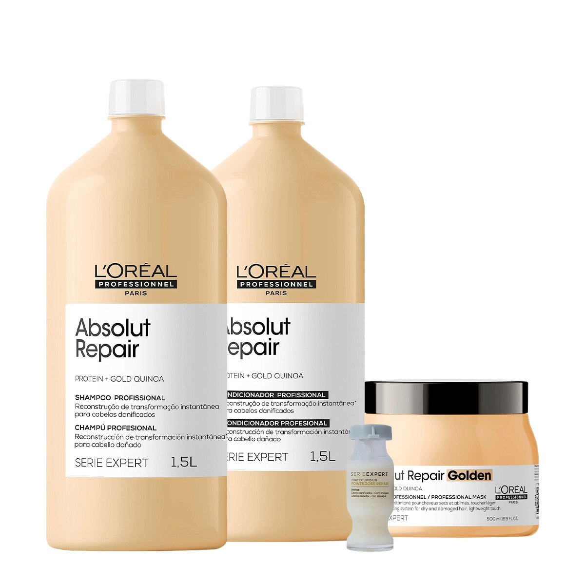 L'Oreal Professionnel Absolut Repair Salon Golden Shampoo Condicionador Litro Máscara G e Ampola (4 produtos)