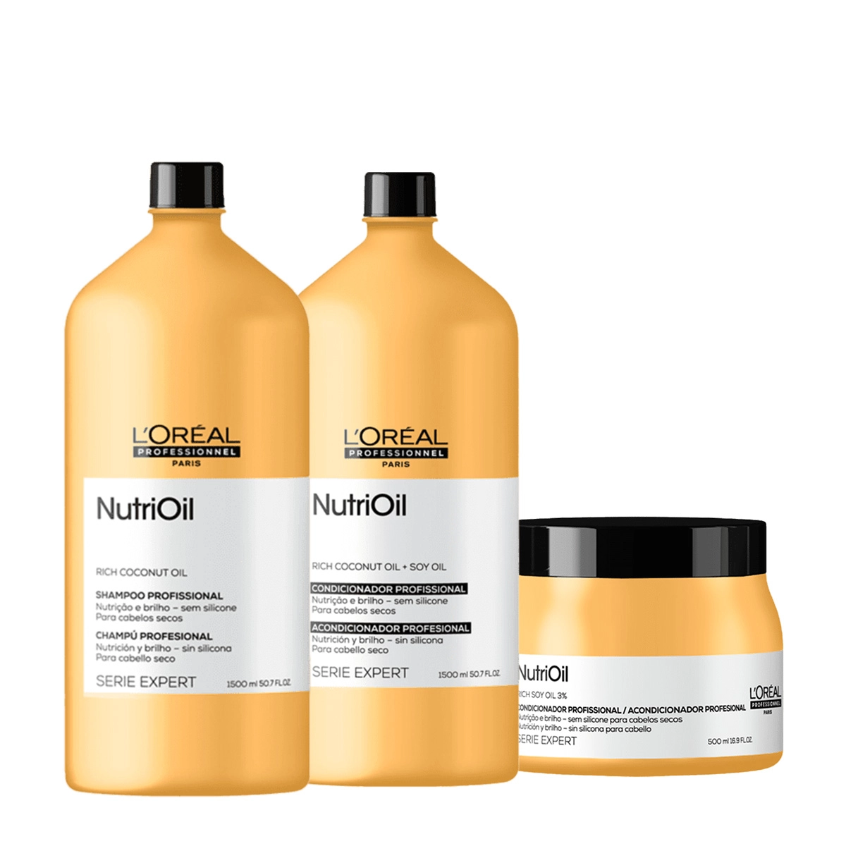 Kit L'Oréal Professionnel Serie Expert NutriOil Shampoo Condicionador Litro e Máscara (3 produtos)