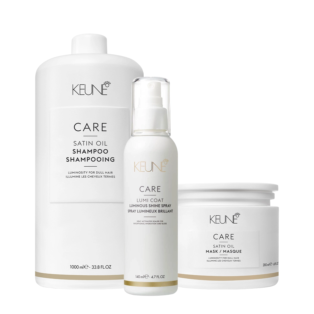 Kit Keune Care Satin Oil Shampoo Litro Máscara G e Lumi Coat Finalizador (3 produtos)