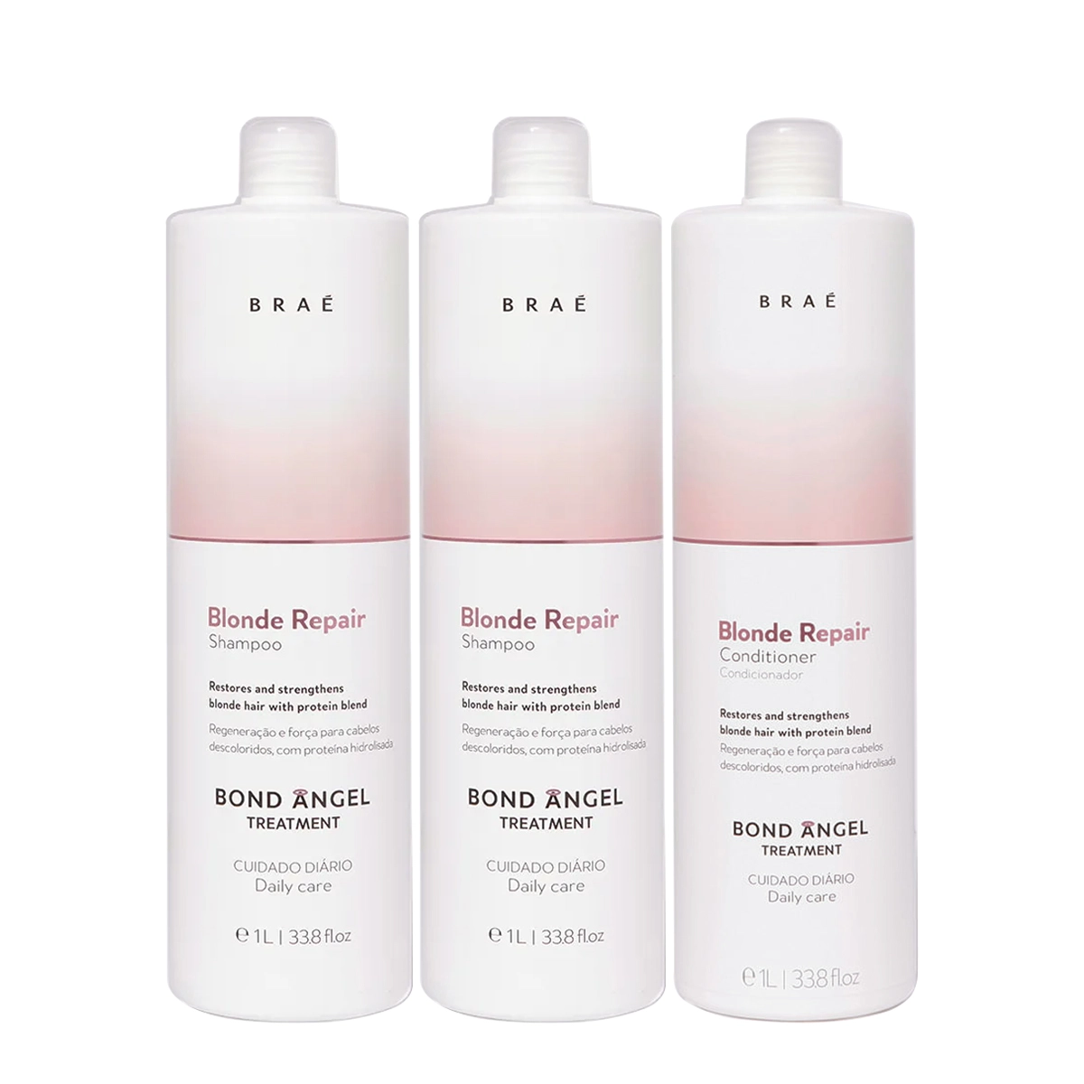 Kit Braé Blond Repair Shampoo Extra Litro e Condicionador (3 produtos)