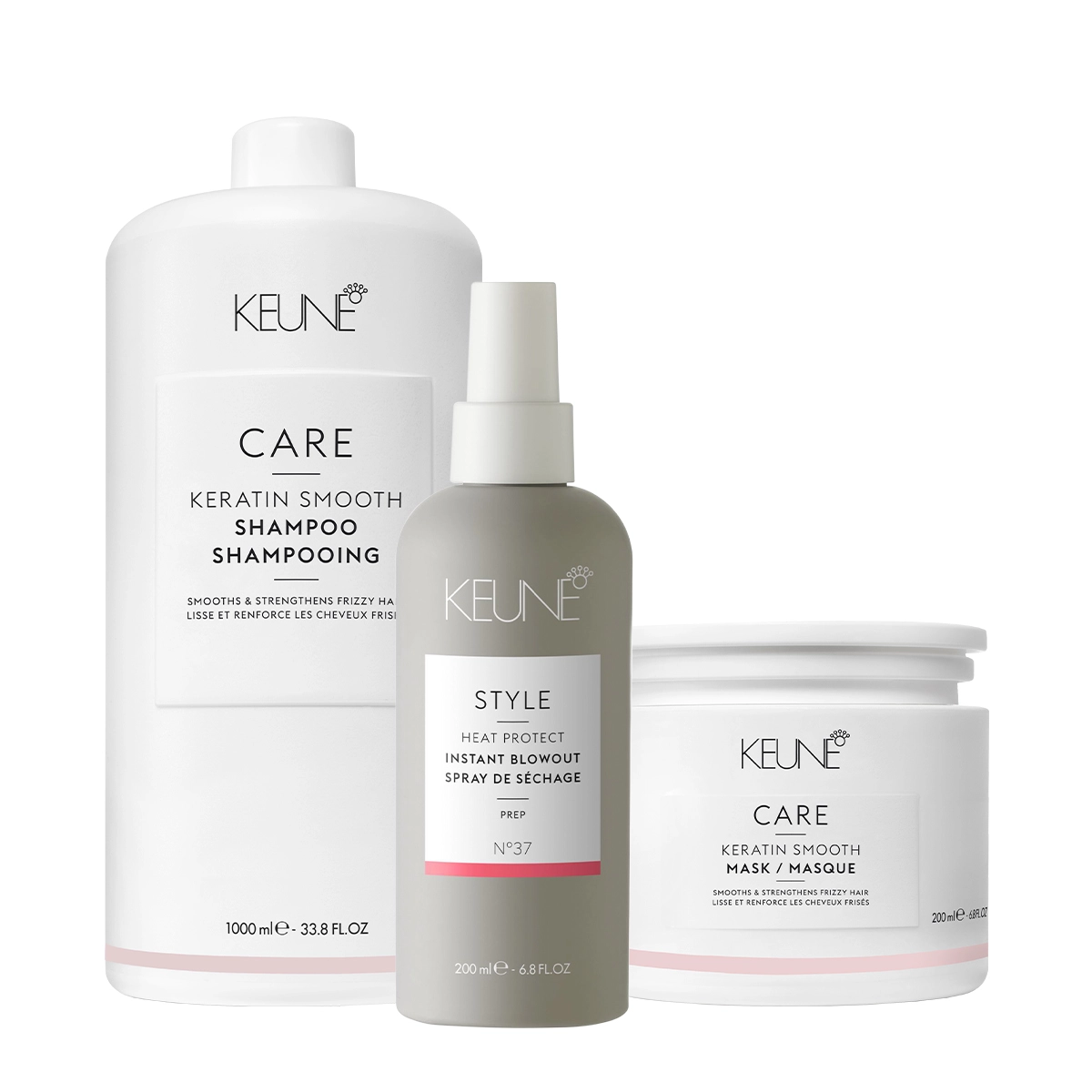 Kit Keune Care Keratin Smooth Shampoo Litro Máscara e Style Instant Blowout 200ml Nº37 (3 produtos)