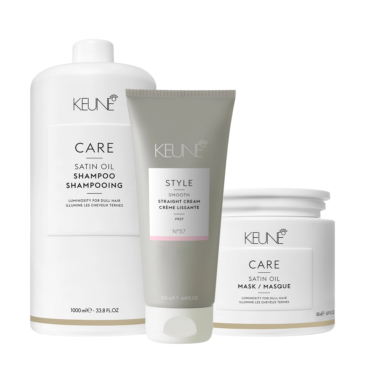 Kit Keune Care Satin Oil Shampoo Litro Máscara G e Style Straight Cream Nº57 (3 produtos)
