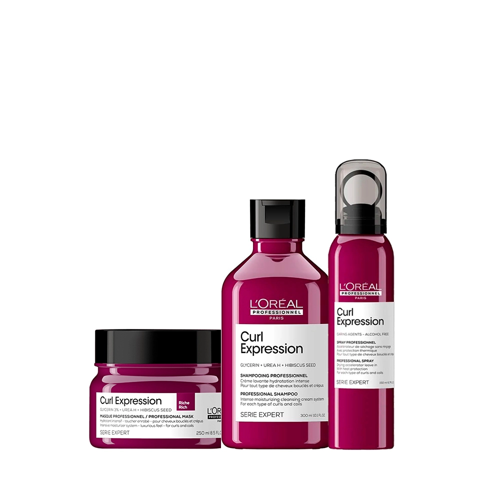 L'Oréal Professionnel Curl Expression Shampoo CREAM + Máscara RICH e Acelerador de Secagem (3 Produtos)