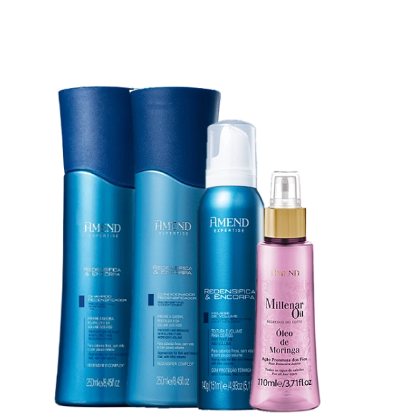Amend Redensifica & Encorpa Shampoo e Condicionador 250ml Mousse 140g e Oleo de Moringa 110ml