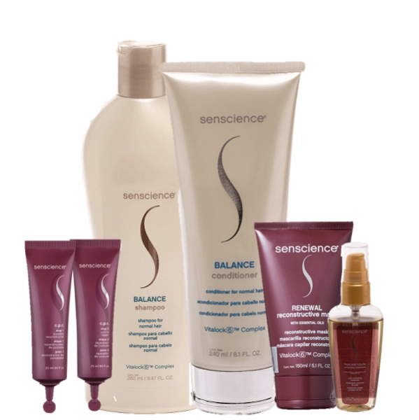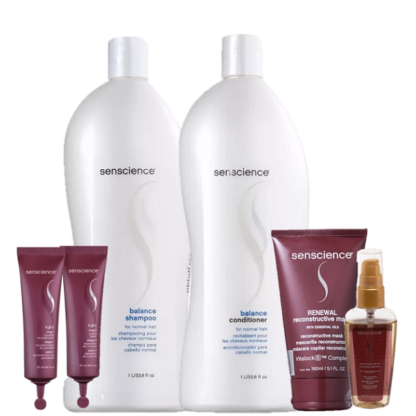 Senscience Renewal Shampoo 280ml Renewal Mask 150ml True Hue Color Oleo 55ml e CPR Tratamento Reconstrutor 2x25ml