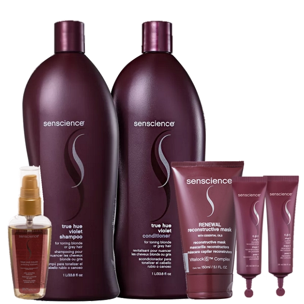 Senscience True Hue Violet Duo 1L Renewal Mask 150ml CPR Tratamento Reconstrutor 2x25ml e True Hue Color Oleo 55ml