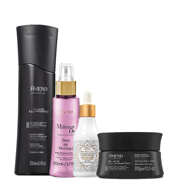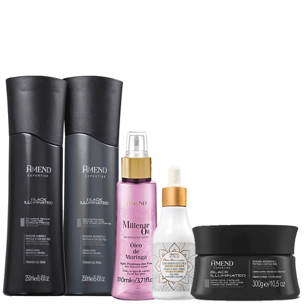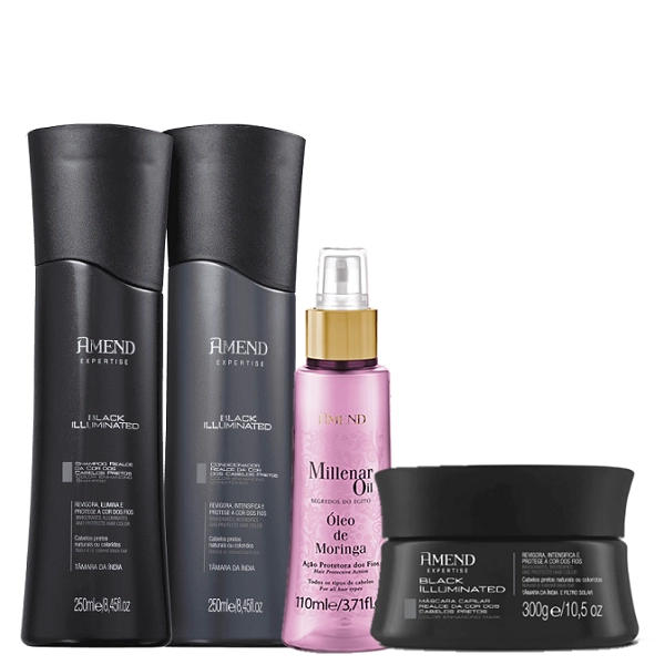 Amend Black Illuminated Realce da Cor Shampoo e Condicionador 250ml Mascara 300g e Oleo de Moringa 110ml