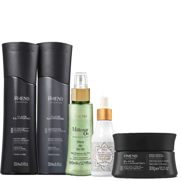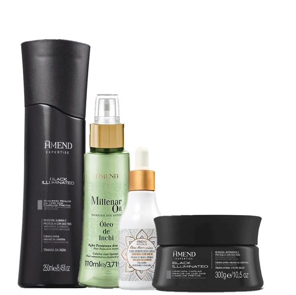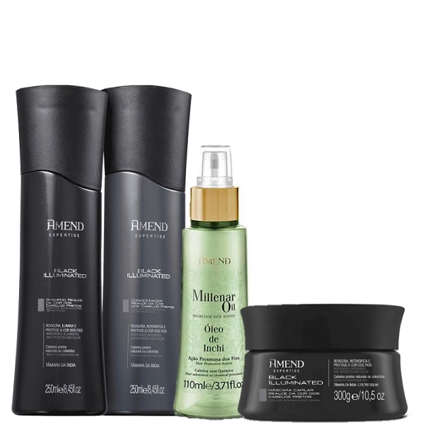 Amend Black Illuminated Realce da Cor Shampoo e Condicionador 250ml Mascara 300g e Oleo de Inchi 110ml