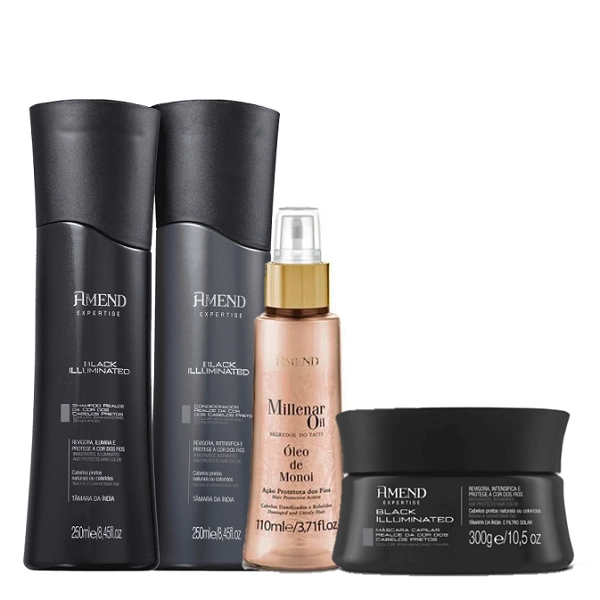Amend Black Illuminated Realce da Cor Shampoo e Condicionador 250ml Mascara 300g e Oleo de Monoi 110ml
