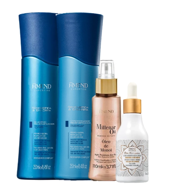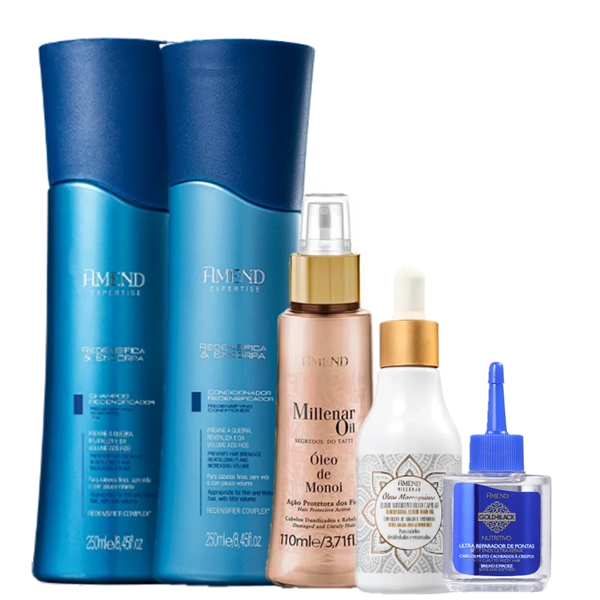 Amend Redensifica & Encorpa Shampoo e Condicionador 250ml Oleo de Monoi 110ml Oleo Marroquino 75ml e Reparador de Pontas