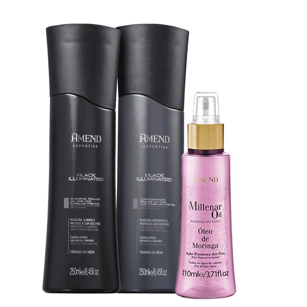 Amend Black Illuminated Realce da Cor Shampoo e Condicionador 250ml e Oleo de Moringa 60ml