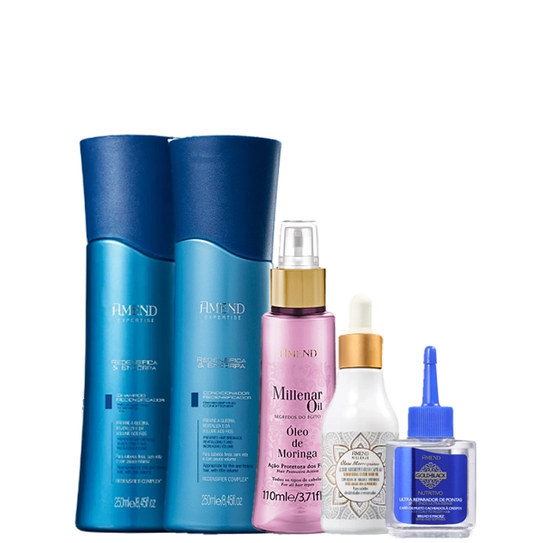 Amend Redensifica & Encorpa Shampoo e Condicionador 250ml Mousse 140g e Oleo de Moringa 110ml