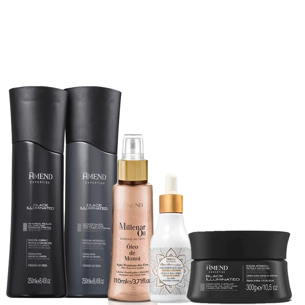 Amend Black Illuminated Realce da Cor Shampoo e Condicionador 250ml Mascara 300g Oleo de Monoi 110ml e Oleo Marroquino 7