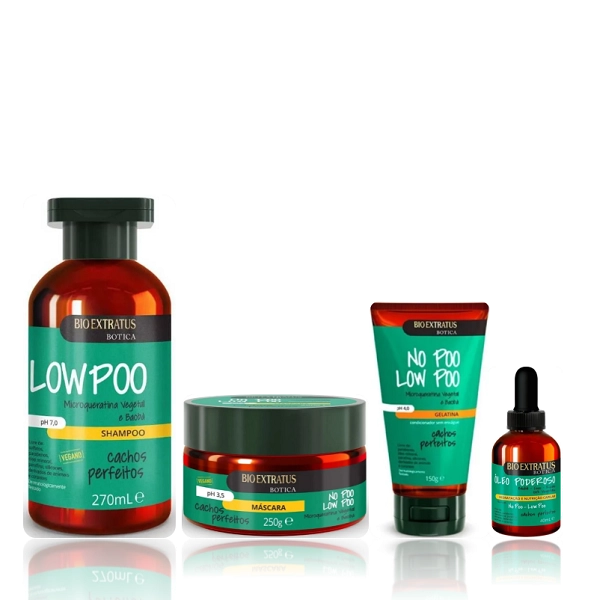 Bio Extratus Cachos Perfeitos Botica Shampoo 270ml+ Máscara 250g+Gelatina150g+Óleo Poderoso 40ml