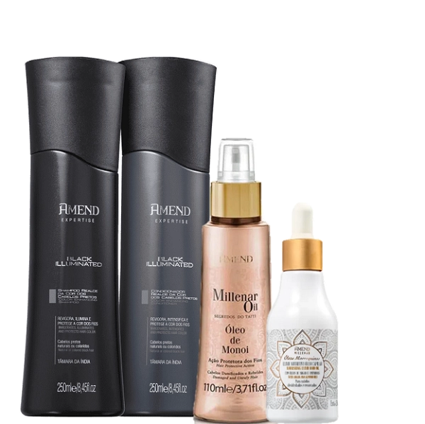 Amend Black Illuminated Realce da Cor Shampoo e Condicionador 250ml Mascara 300g Oleo de Moringa 60ml e Oleo Marroquino