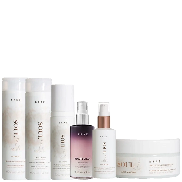 Braé Soul Color Shampoo 250ml Mascara 200g Oil Blend 60ml Prime Spray 100ml e Beauty Sleep 100ml