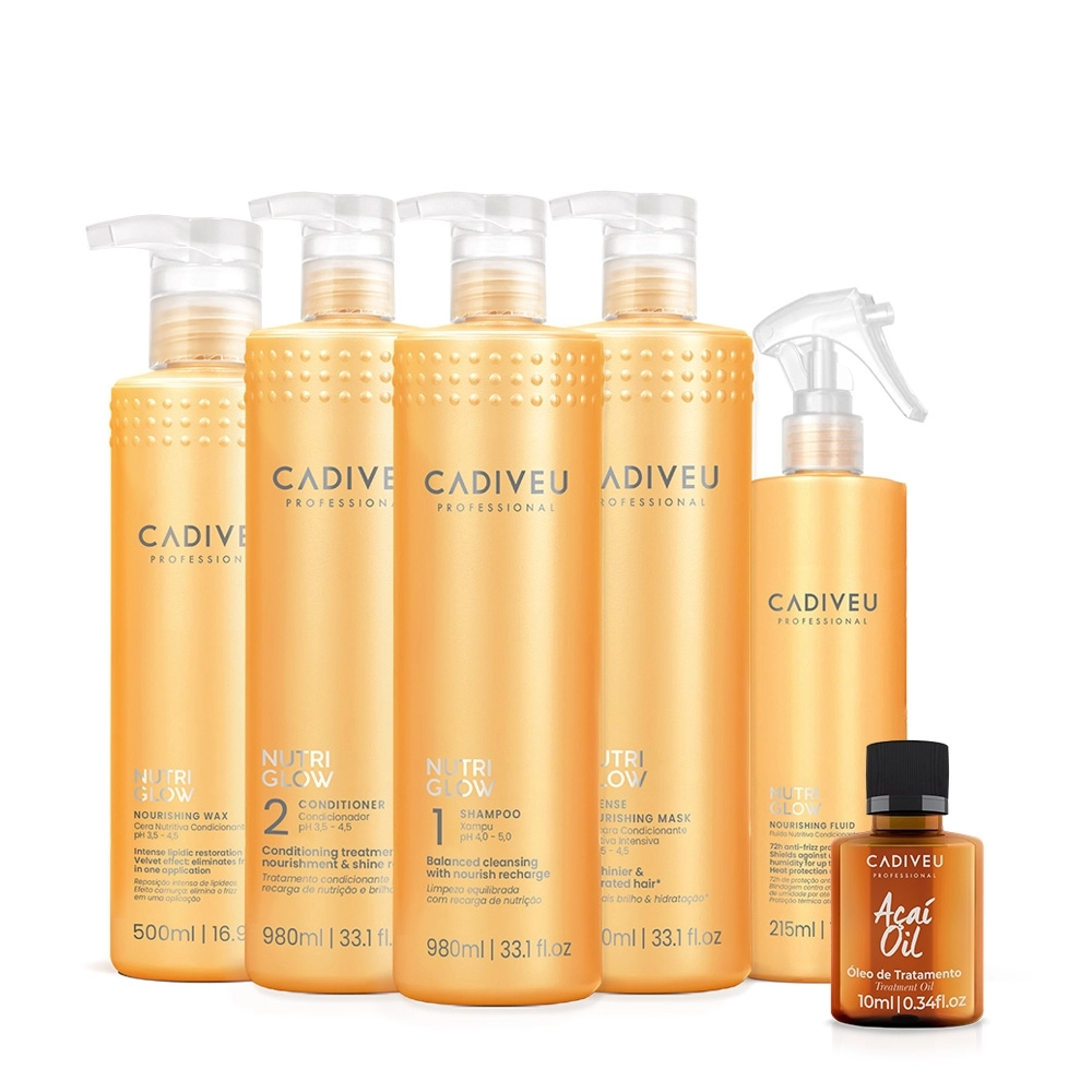 Kit Cadiveu Professional Nutri Glow Litro Completo e Óleo Açai 10ml (6 produtos)