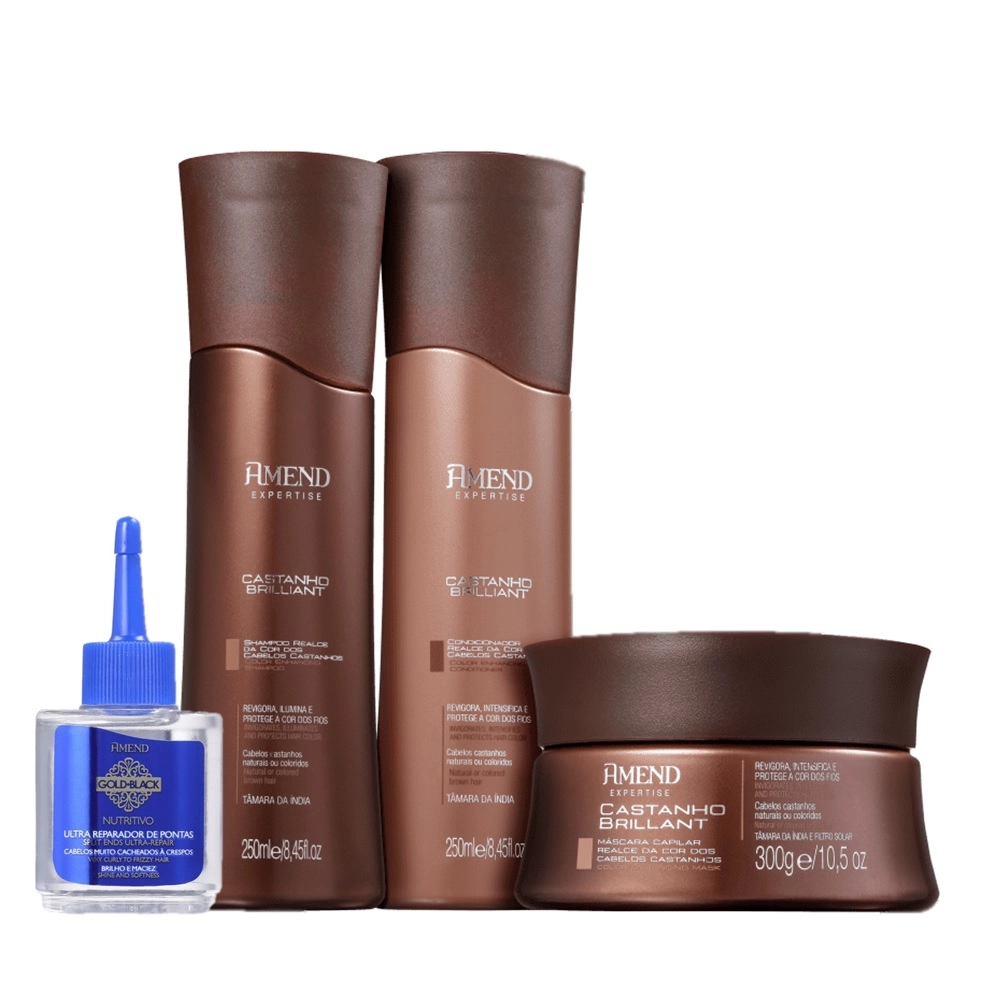 Kit Amend Realce da Cor Castanho Brilliant Shampoo Condicionador Máscara e Fluído Antiumidade (4 produtos)