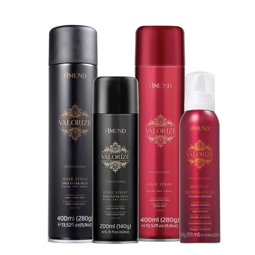 Kit Amend Valorize Mousse e Spray Fixador Ultra Forte e Spray Fixador Forte Grande (4 produtos)