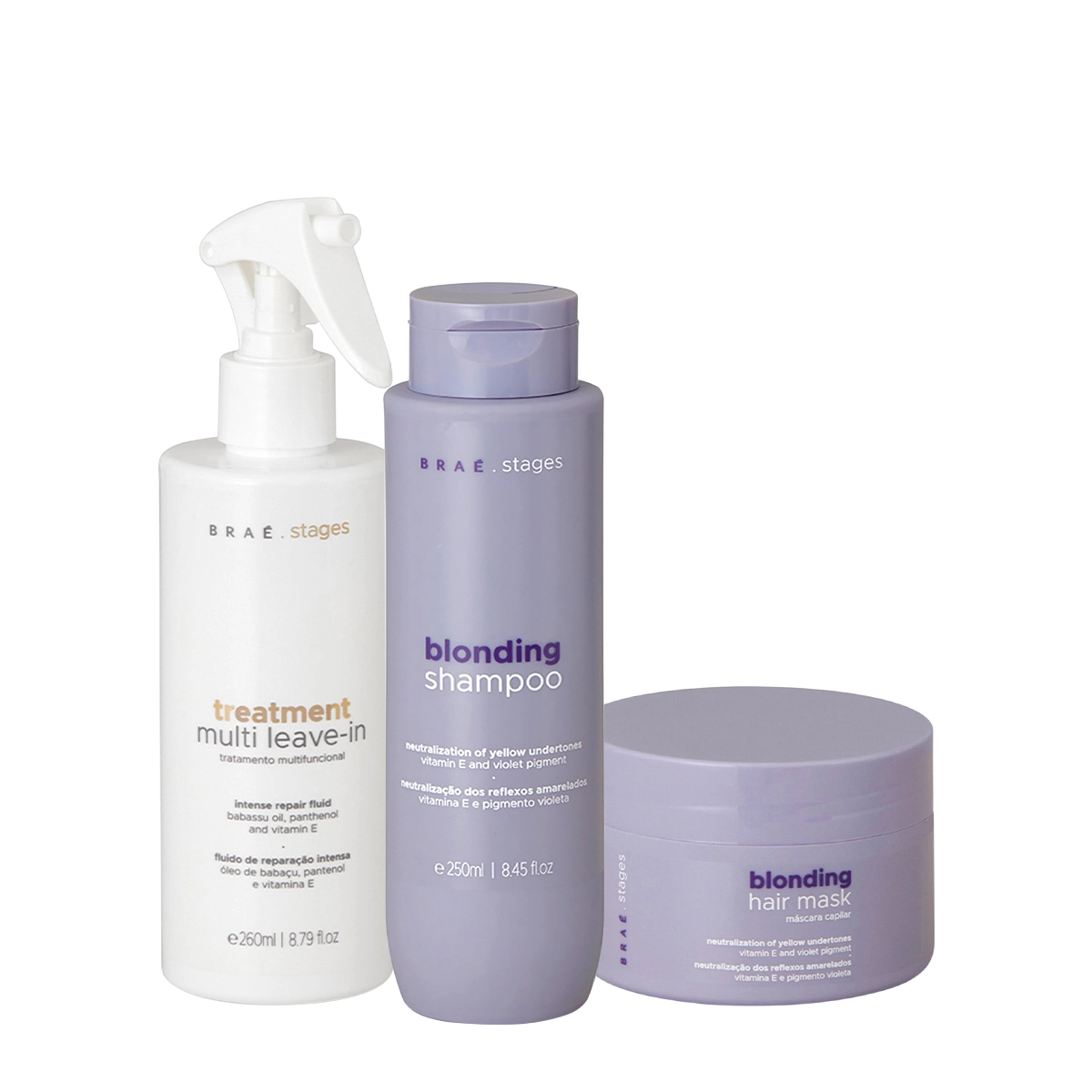 Kit Braé Stages Blonding Shampoo Máscara Multi Leave-in (3 produtos)