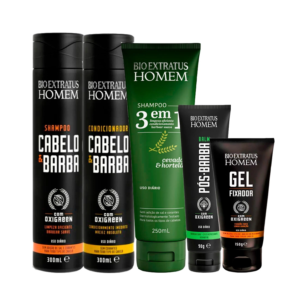 Kit Bio Extratus Homem Cabelo e Barba Fix (5 produtos)