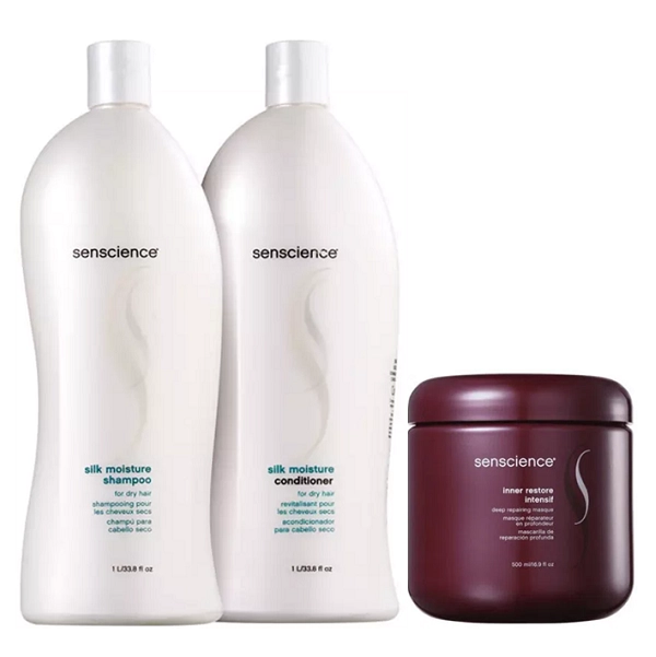 Senscience Silk Moisture Shampoo+Condicionador 1L+Máscara Inner Restore Deep Moisturizing 200ml