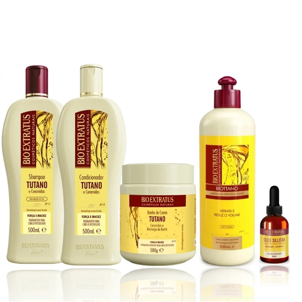Bio Extratus Tutano Shampoo 500ml+Mácara 500g+Umidificador de Cachos 500ml+Oleo Sillitan 40ml