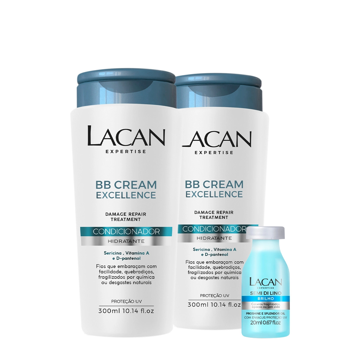 Kit Lacan BB Cream Excellence Shampoo Condicionador Máscara Leave-in e Ampola (5 Produtos)
