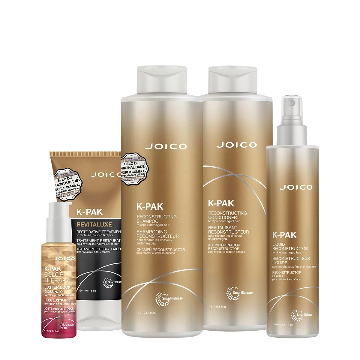 Kit Joico K-PAK Reconstrutor Revitaluxe Luster Salon Máscara Oil Spray (5 produtos)