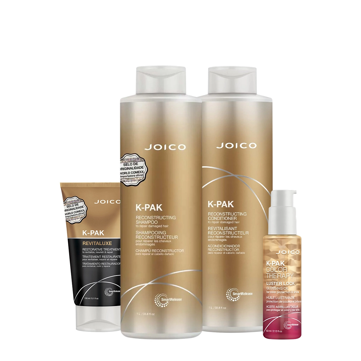 Kit Joico K-PAK Reconstrutor Revitaluxe Luster Clarifying Home Care Oil (4 produtos)