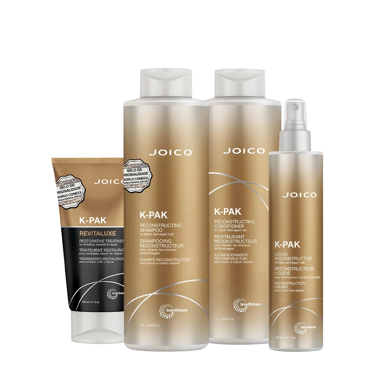 Kit Joico K-PAK Reconstrutor Revitaluxe Luster Salon Máscara Spray (4 produtos)