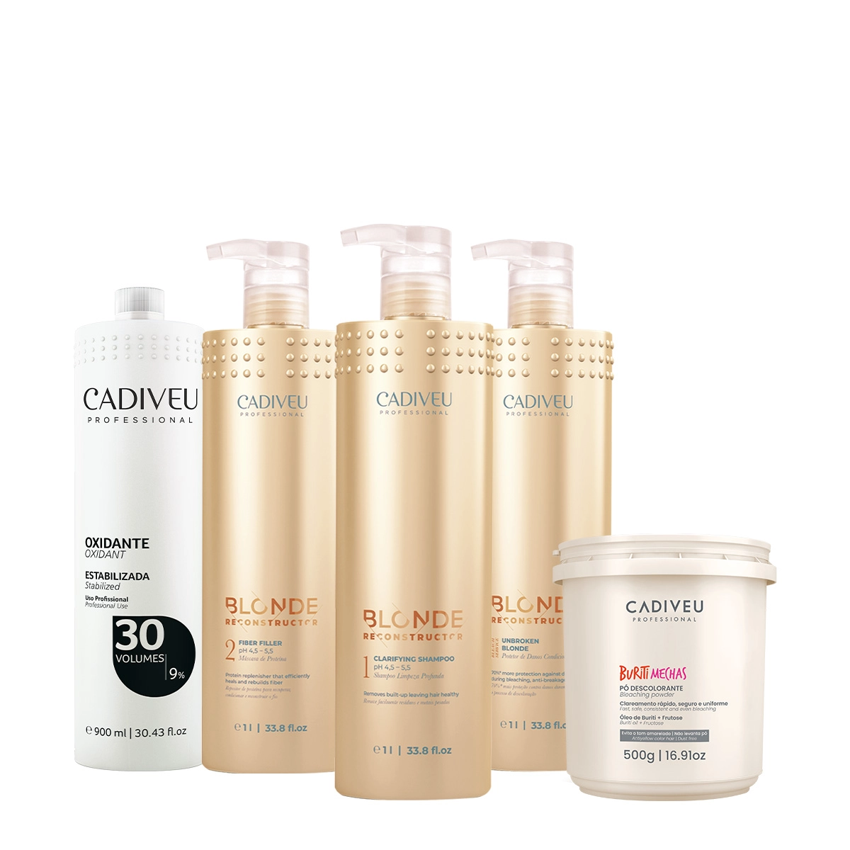 Kit Cadiveu Professional Blonde Reconstructor Completo Oxidante 30 Volumes e Buriti Mechas (5 produtos)