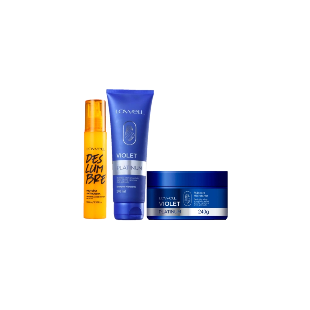 Kit Lowell Violet Platinum Deslumbre Máscara e Proteína Antiquebra (3 produtos)