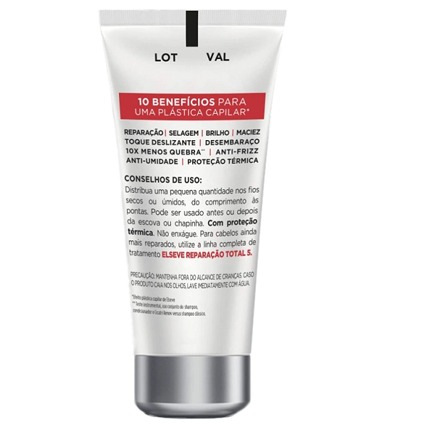O leave-in Elseve pode ser utilizado em todos os tipos de cabelo, atendendo principalmente os danificados. Traz proteção, reparação e revitalização aos fios. Pode ser usado com o cabelo seco ou molhado, antes ou depois do secador. Faz uma plástica capilar instantânea nos fios, sem pesar. Sela as pontas duplas e o frizz. Repara instantaneamente, com um toque deslizante. Proteção térmica.