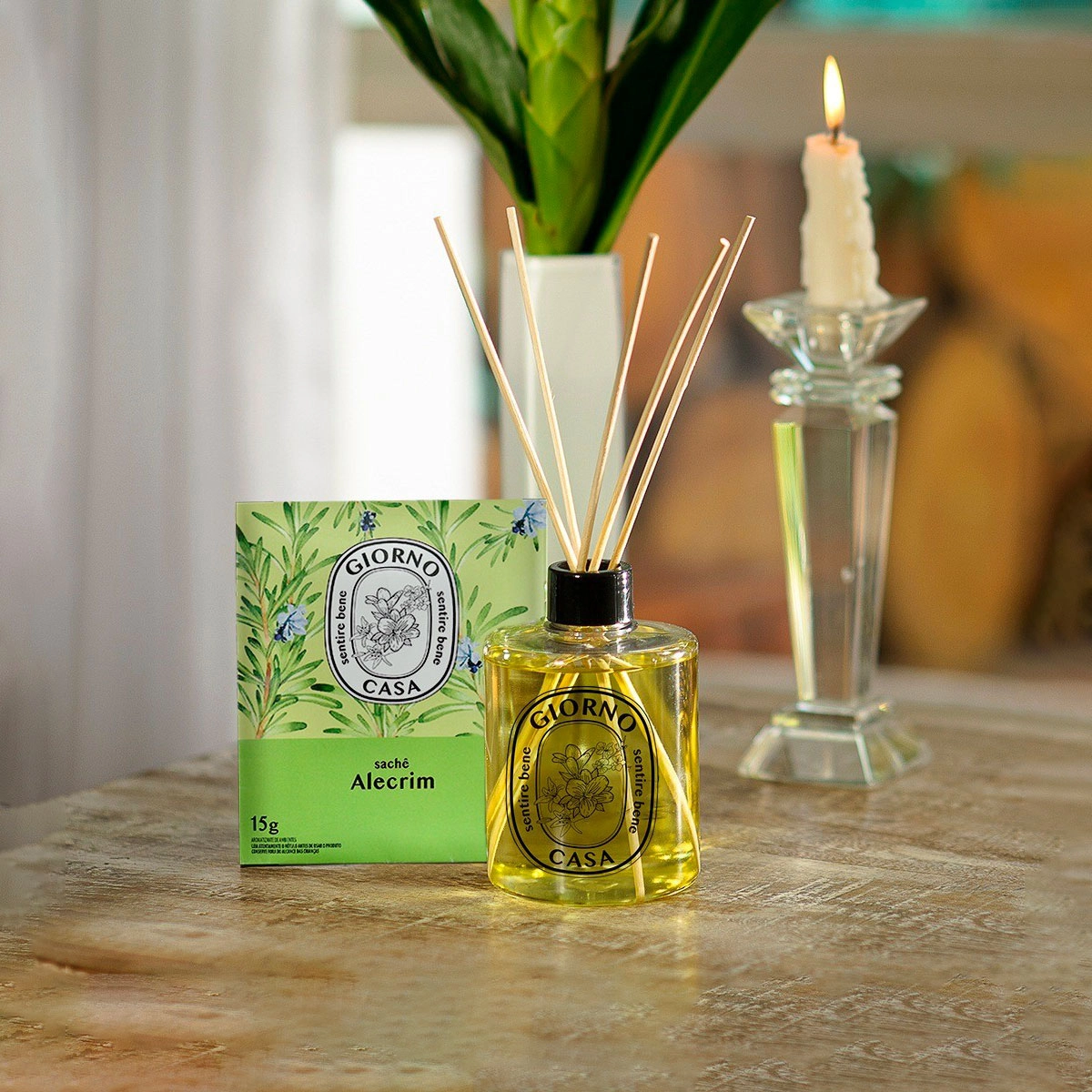 Foi desenvolvido para melhor dispersar os aromas nos ambientes, através do Palito de alta ação de absorção e difusão presente nos palitos. Sugestão de UsoGiorno Casa Alecrim - Difusor de Ambientes 250ml