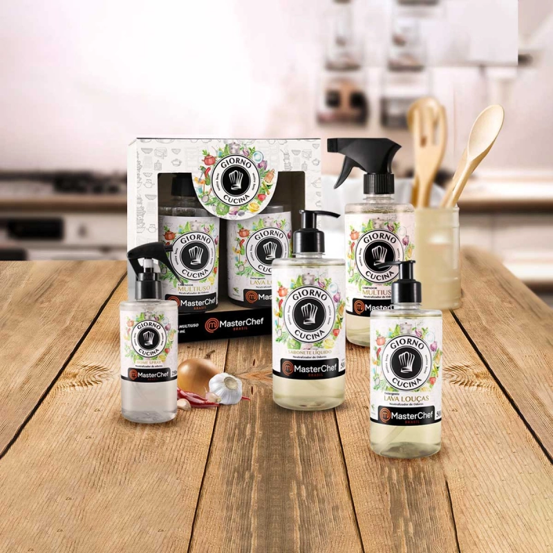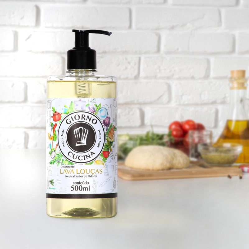 Giorno Cucina Sentire Bene Masterchef - Limpeza Eficiente e Frescor Oferece limpeza rápida e eficaz com espuma cremosa, eliminando até gorduras difíceis. Com tecnologia NeoFresh e tensoativo biodegradável, neutraliza odores de alho, cebola e fritura, deixando suas louças impecáveis e a cozinha fresca, com praticidade e sofisticação no dia a dia. Conselho de Aplicação