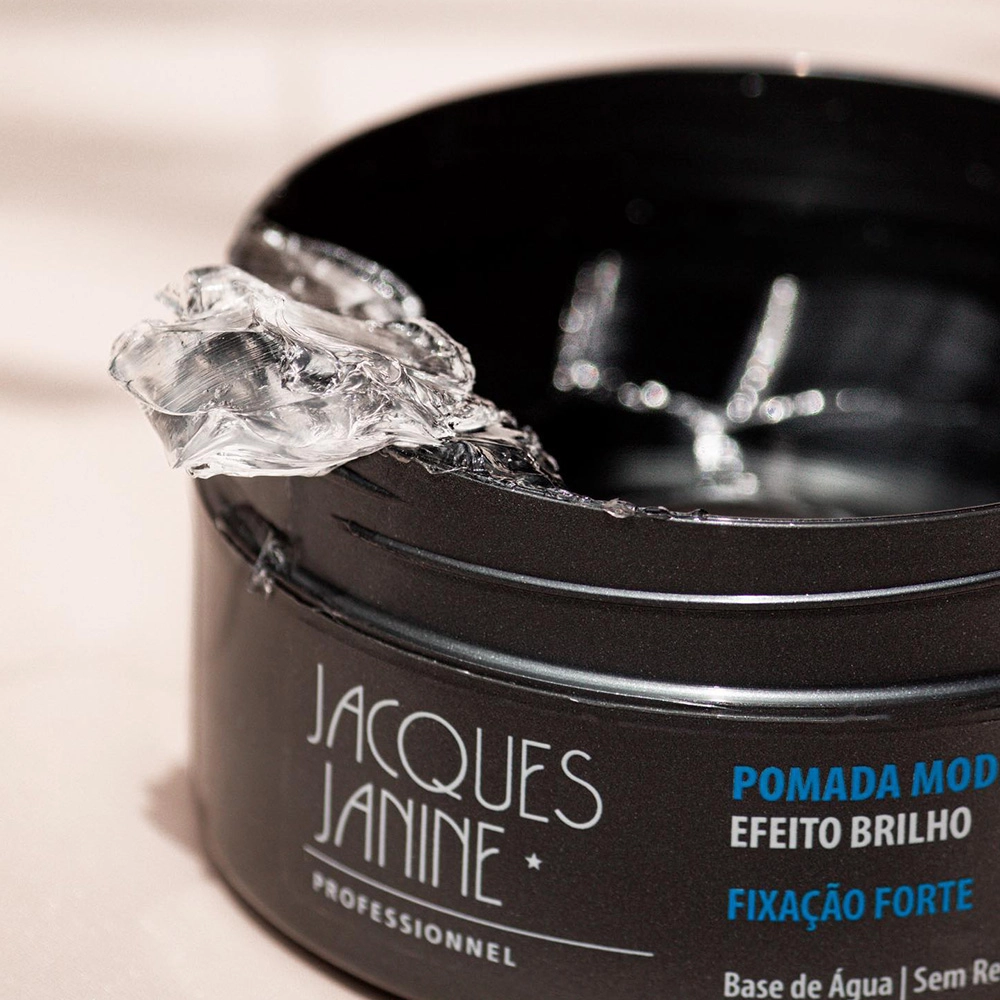 A Pomada Modeladora Base Água Fixação Forte Jacques Janine Professionnel foi desenvolvida com ativos especiais para garantir fixação alta e aspecto molhado aos penteados. Sua fórmula exclusiva, garante que os fios se mantenham disciplinados e leves ao longo do dia. Por ser a base de água e antirresíduos a pomada pode ser lavada facilmente e reaplicada no cabelo para remodelação sem que os fios fiquem oleosos. Conselho de Aplicação Jacques Janine Professionnel Efeito Brilho – Pomada Modeladora 80g