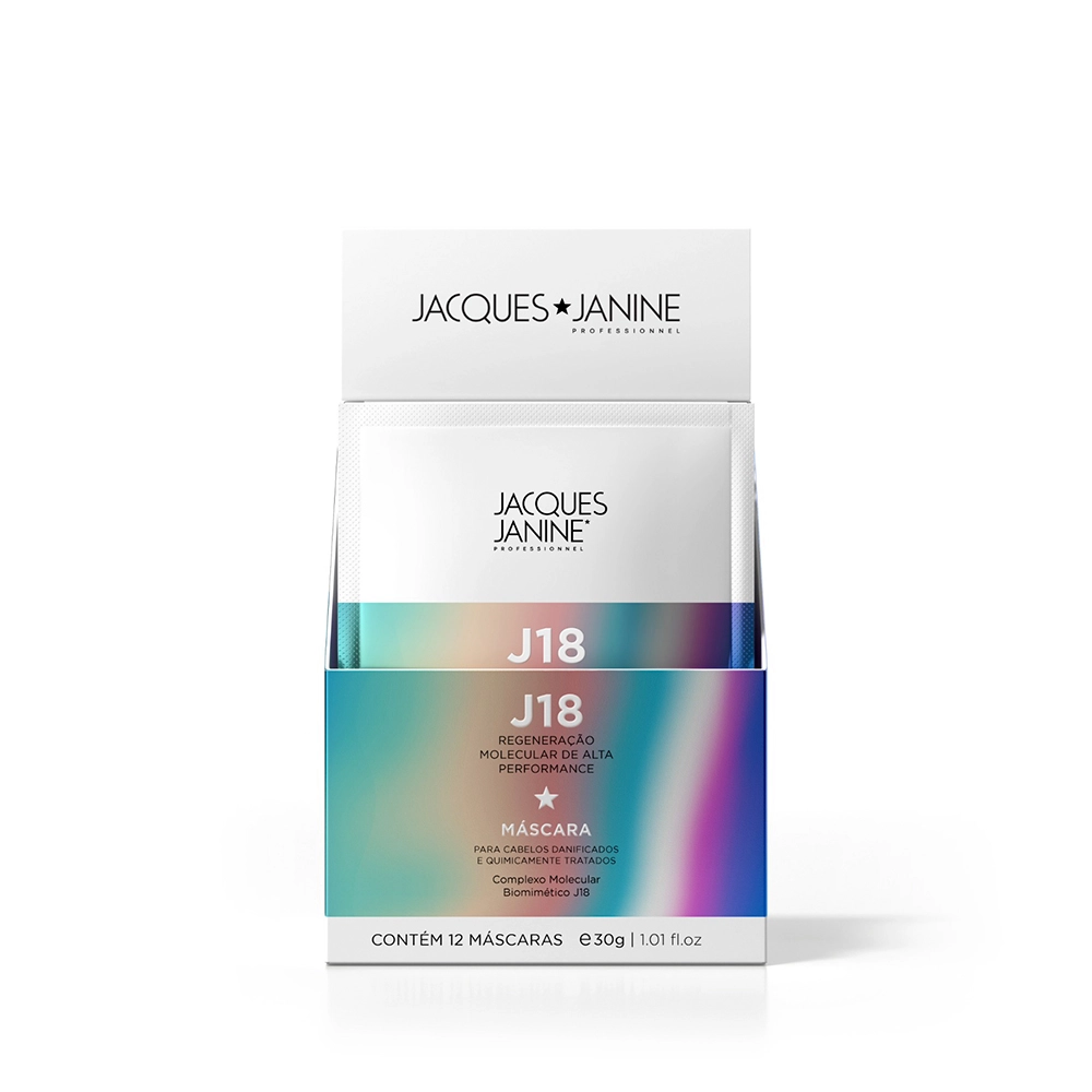 A Máscara J18 Foi Desenvolvido Especialmente Para cabelos danificados e Quimicamente tratados. Atua nas camadas mais profundas da fibra capilar, reestruturando os fios em apenas 4 minutos. Reconecta as cadeias polipeptídicas quebradas, além de restaurar a força e elasticidade do cabelo. Conselho de Aplicação Jacques Janine Professionnel J18 – Máscara Sache 30g