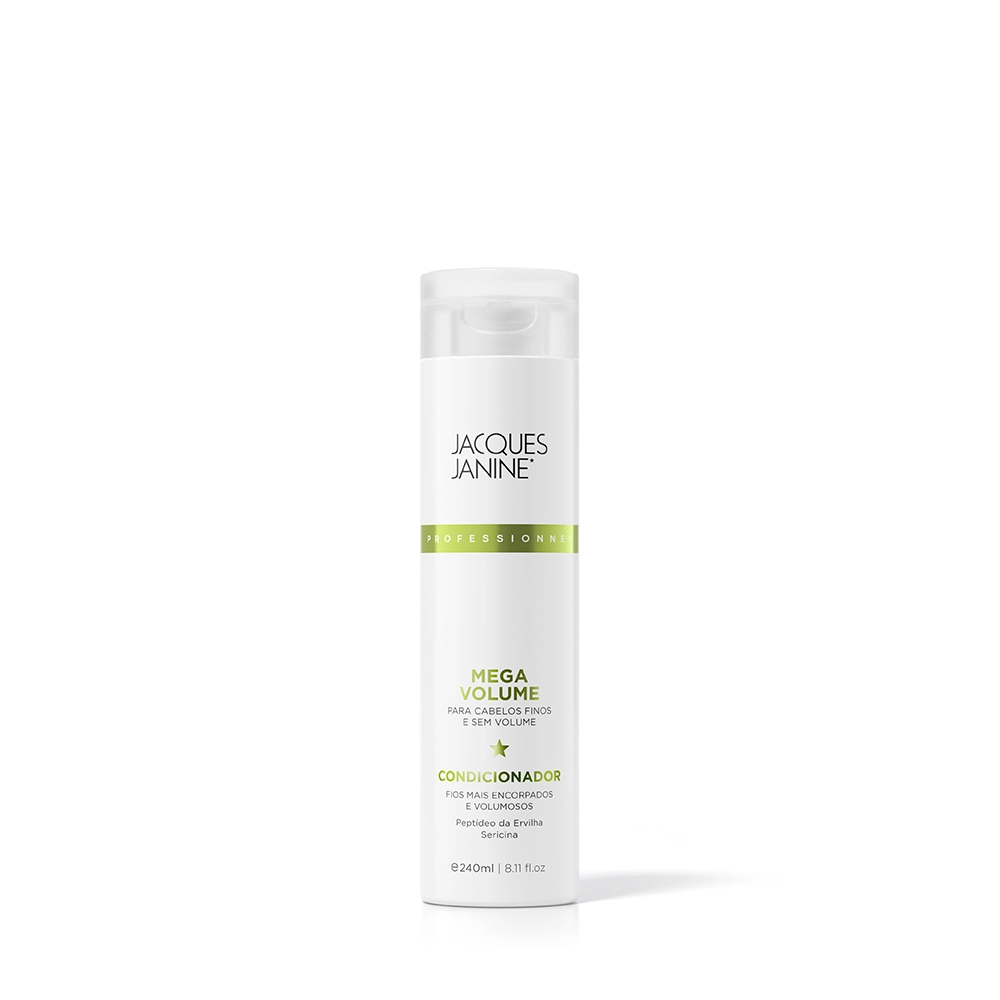 O Condicionador Mega Volume, proporciona uma ação anti – gravidade que permite aos fios se manterem encorpados e volumosos com um movimento natural sem ficar com aspecto pesado. Sua formula possui peptídeos de ervilha , sericina e extrato de alfarroba , que são nutrientes essenciais para manter a hidratação natural dos fios. Conselho de AplicaçãoJacques Janine Professionnel Mega Volume – Condicionador 240ml